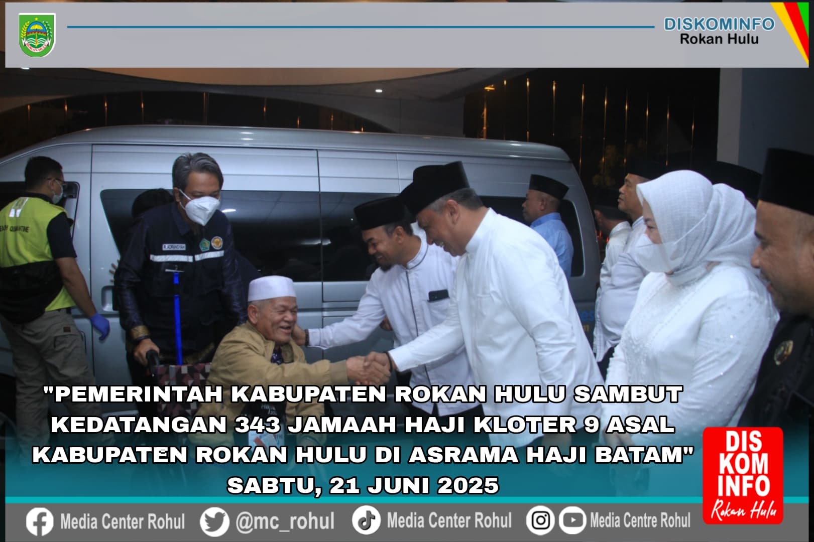 Batam – Sebanyak 343 jamaah haji asal Kabupaten Rokan Hulu (Rohul) yang tergabung dalam Kelompok Terbang (Kloter) 9 telah tiba dengan selamat di Asrama Haji Batam pada Sabtu (21/6/2025) pukul 01.00 WIB dini hari. Kepulangan para jamaah dari Jeddah ke Batam turut didampingi oleh dua orang Petugas Haji Daerah (PHD).