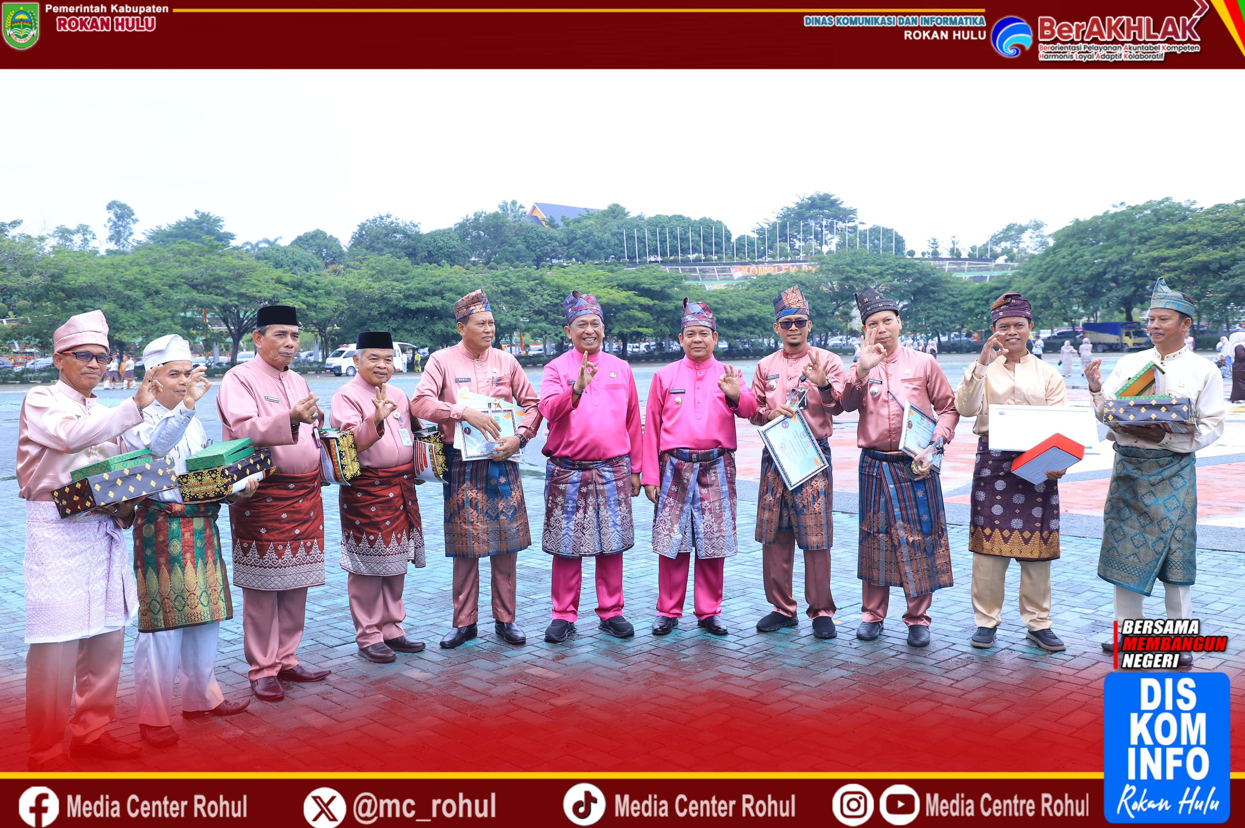 Upacara yang dimulai dengan Parade Bendera Kebesaran Lima Luhak dan Simbol Kecamatan di Rohul ditutup dengan pemberian penghargaan kepada Subaryono Juara 1 Paramedik Veteriner tingkat nasional, Tim Pencak Silat Korpri Rohul pada ajang Pornas ke-17 meraih 1 perak dan 1 perunggu, Pemberian SK Pensiun, dan pemberian piagam penghargaan untuk terbaik evaluasi kinerja Kecamatan Tahun 2025 (MCDiskominfo).